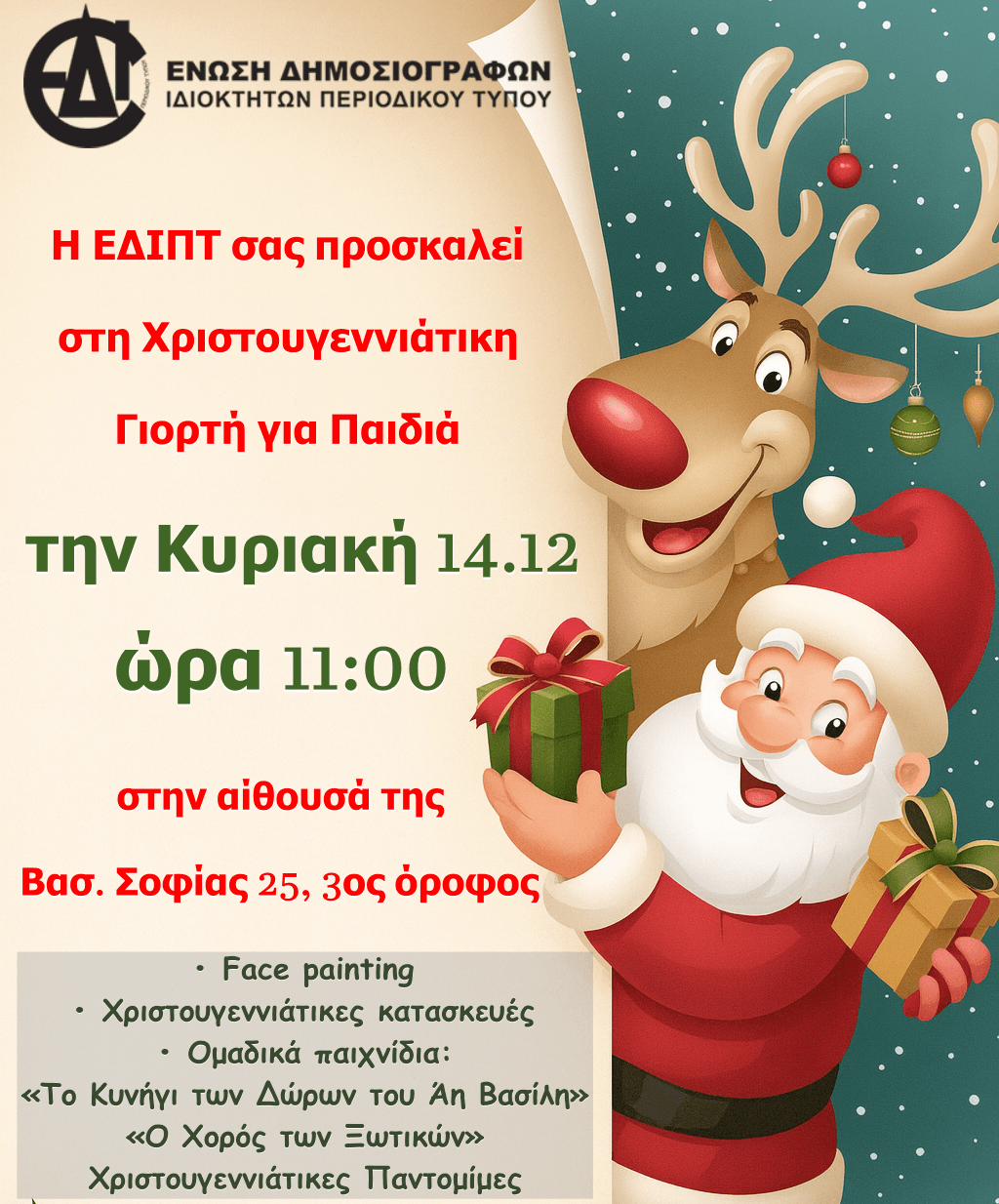 Χριστουγεννιάτικη παιδική γιορτή στην ΕΔΙΠΤ την Κυριακή 14 Δεκεμβρίου