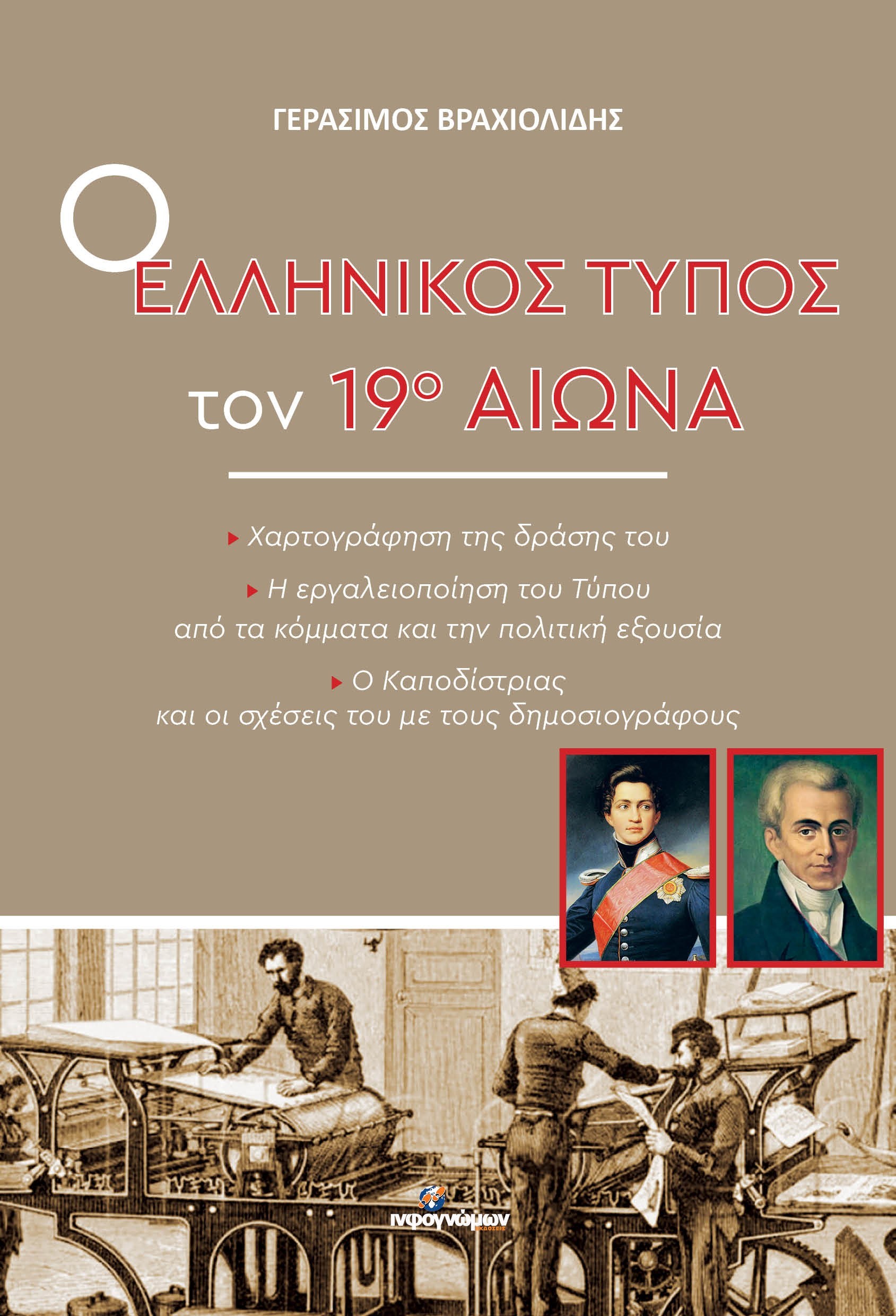 Ο συγγραφέας του βιβλίου χαρτογραφεί τις σημαντικές περιόδους του Τύπου, από την προεπαναστατική εποχή, στον Αγώνα για την Ελευθερία, στη δημιουργία, αλλά και στην πορεία του ανεξάρτητου ελληνικού κράτους στον 19ο αιώνα.