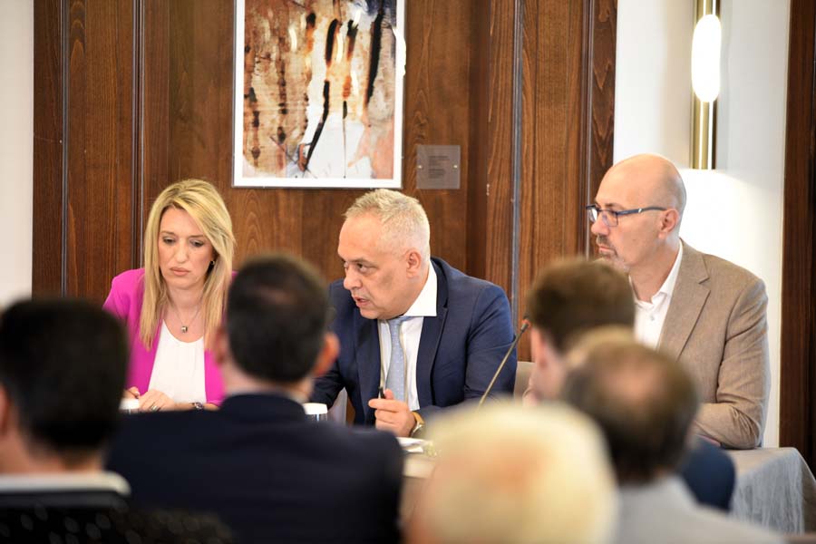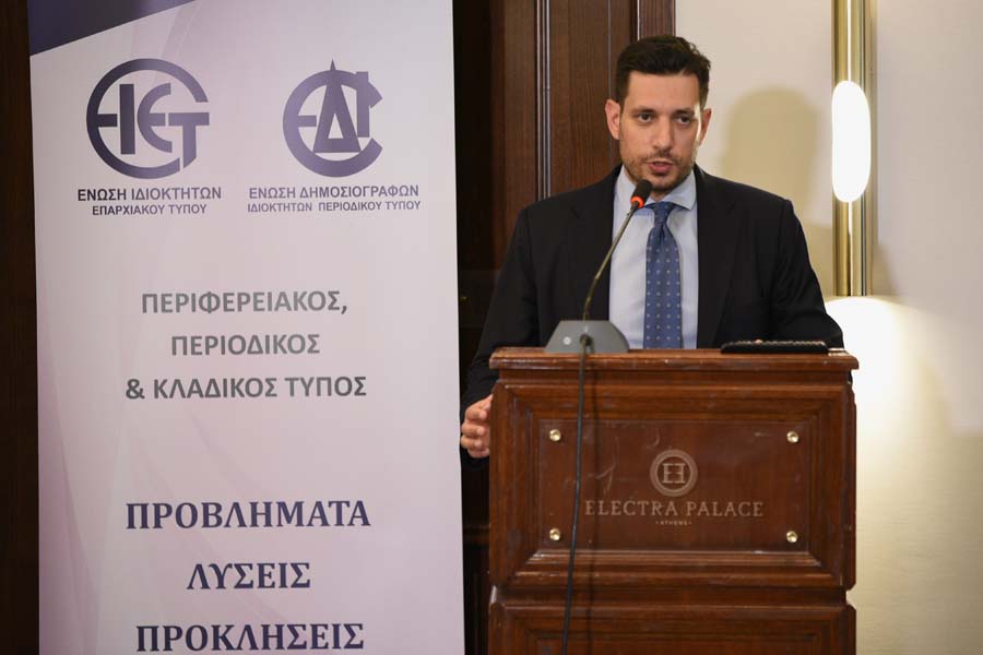 Προηγουμένως, εκ μέρους των διοργανωτών τους προσκεκλημένους καλωσόρισε ο Γενικός Γραμματέας της ΕΙΕΤ Νίκος Σουρλόπουλος, ενώ οι Πρόεδροι των Ενώσεων Αντώνης Μουντάκης (ΕΙΕΤ) και Πέννυ Καλύβα (ΕΔΙΠΤ) εισηγήθηκαν τα κεντρικά θέματα που απασχολούν τον κλάδο, όπως το ασφαλιστικό, τα προγράμματα ενίσχυσης των επιχειρήσεων του περιφερειακού και περιοδικού τύπου, την εφαρμογή του Μητρώου Τύπου, το πλαίσιο κατανομής της κρατικής διαφήμισης, την ψηφιακή αναβάθμιση των επιχειρήσεων τύπου, την τιμολόγηση των υποχρεωτικών δημοσιεύσεων, τη διανομή των εντύπων μέσω των ΕΛΤΑ κ.ά.
