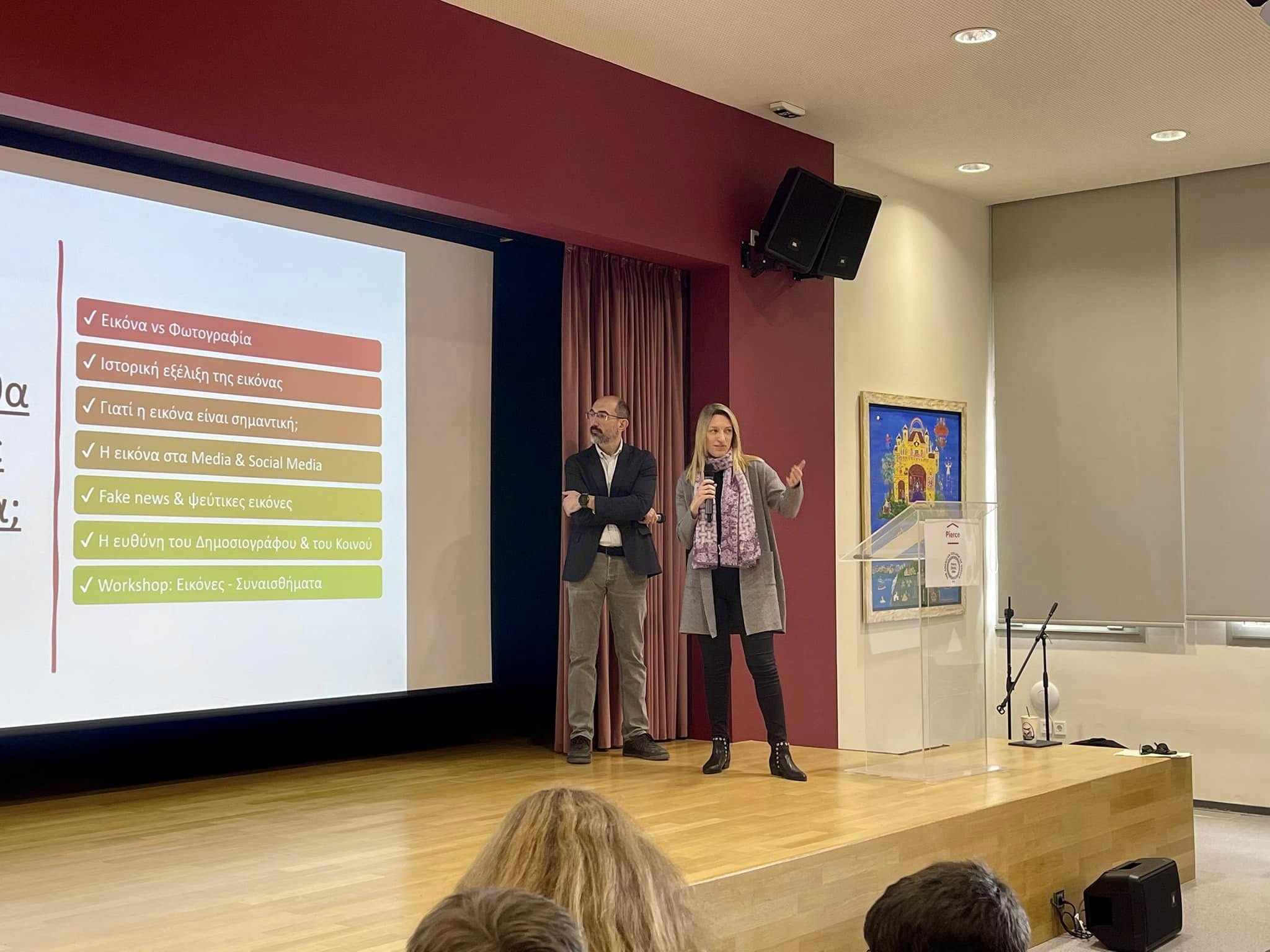 Η Πρόεδρος της ΕΔΙΠΤ Πέννυ Καλύβα και ο Γενικός Γραμματέας Κωστής Σπύρου, μίλησαν σε δύο ομάδες συνολικά 250 μαθητών, αναλύοντας πώς οι φωτογραφίες επηρεάζουν την ενημέρωση, πώς μεταφέρουν συναισθήματα αλλά και πώς μπορούν να παραπλανήσουν.