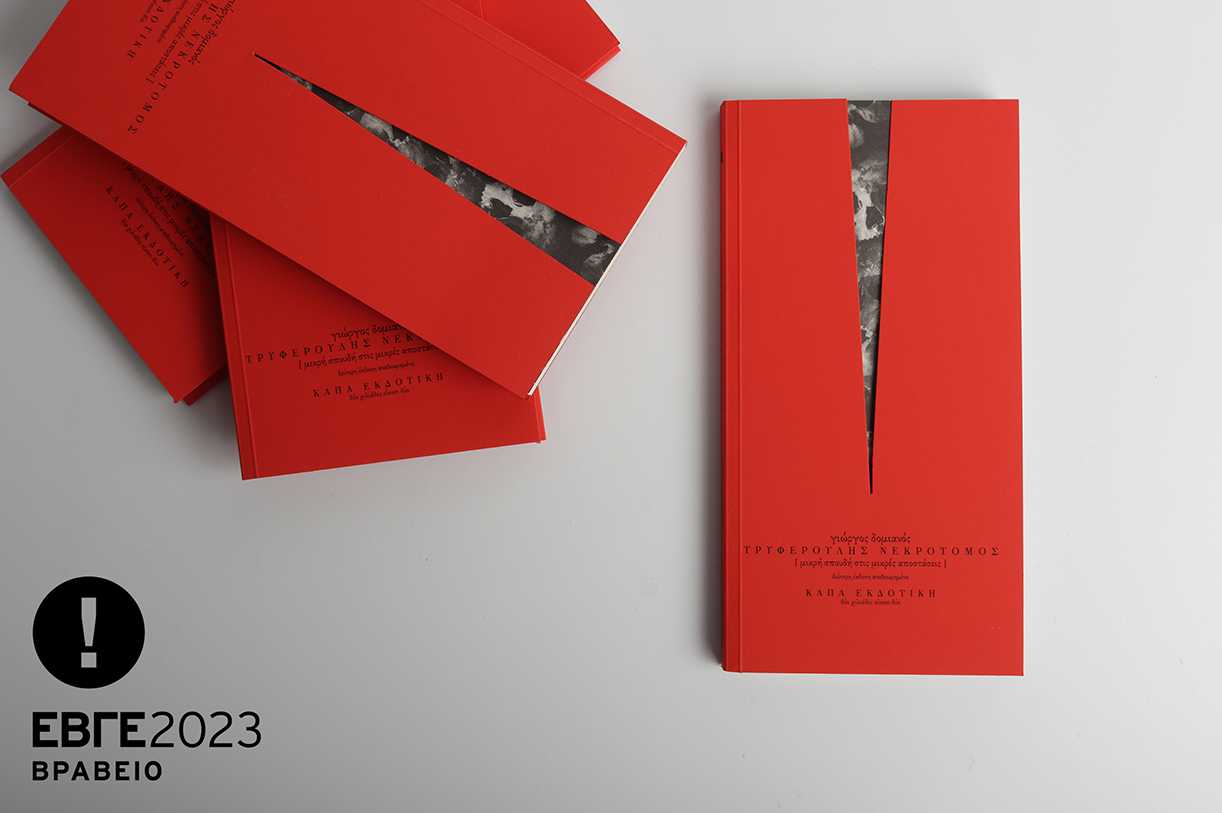 Συγκεκριμένα, ο Καβαλιώτης Editorial Designer πήρε το Βραβείο ΕΒΓΕ για τον σχεδιασμό του εξωφύλλου του βιβλίου του ποιητή Γιώργου Δομιανού «Τρυφερούλης νεκροτόμος» [Κάπα Εκδοτική, 2022] και τον Έπαινο ΕΒΓΕ για την ποιητική συλλογή «Εγώ θα σου μάθω πουλάκι μου», του ιδίου [Κάπα Εκδοτική, 2022].